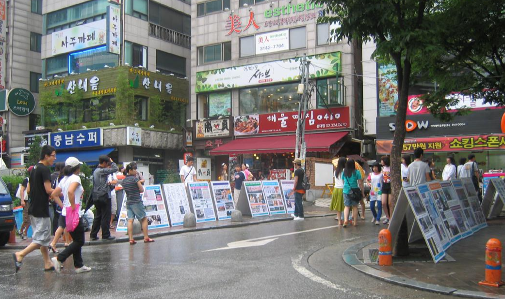 반기독교 게시물이 부착된 판넬을 사람들이 많이 다니는 거리에 전시를 하고(사전 집회허가를 당국에서 득한 후) 행인들이 관람하게 합니다.