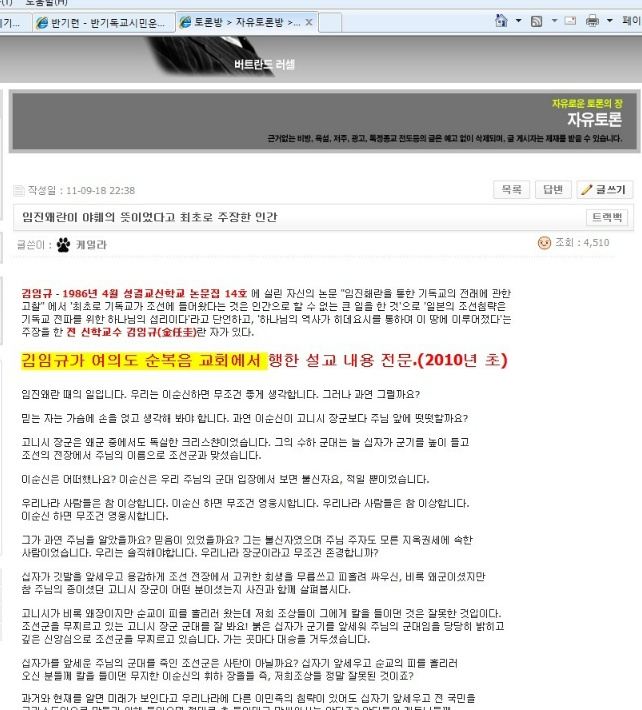 주장을 한 전 신학교수 김임규(金任圭)란 자가 있다.