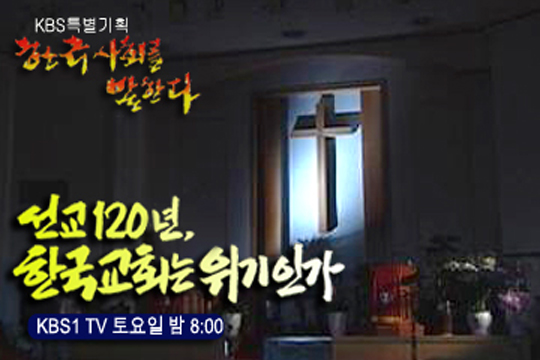 1TV ‘선교 120주년, 한국교회는 위기인가’ 라는 특집프로그램이 2004년 1월 2일에 방영되었습니다. 이 방송은 시청자들이 다양한 의견들을 분출시키는 열띤 반응을 불러일으켰습니다. 한기총을 중심으로 방송의 중단을 요구하는 항의 집회가 있었고 방영후에도 이어지는 항의집회가 있었습니다. 아래는 선교 120년에 대한 KBS의 특집 방송에 대한 한겨레 신문의 기사입니다. 이 특집 프로그램이 방영된 후 16년이라는 시간이 지나갔습니다. 그러나 이때에 제기된 문제들은 현재 우리나라 교회의 문제로 그대로 남있다는 것을 부정할 수가 없습니다. =========================================================== "우리교회 장로님이 봤으면 좋았을 걸…" KBS '한국교회…' 방..